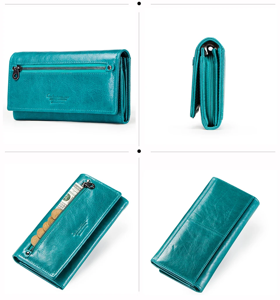 Contact's HOT Genuine Leather Wallet Women Card Holder Wallets for Women Long Style Coin Purse Female Clutch Bag Portfel Damski