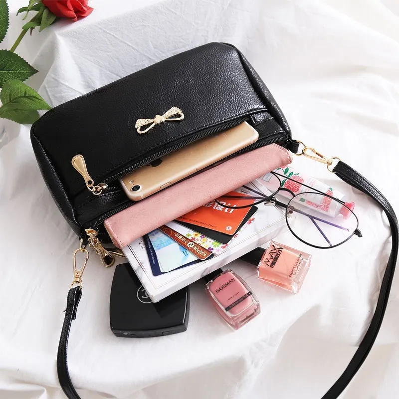 Fashion Small PU Leather Messenger Bags for Women Bow Design Shoulder Bag Ladies Casual Crossbody Purse Female Handbags Pouch